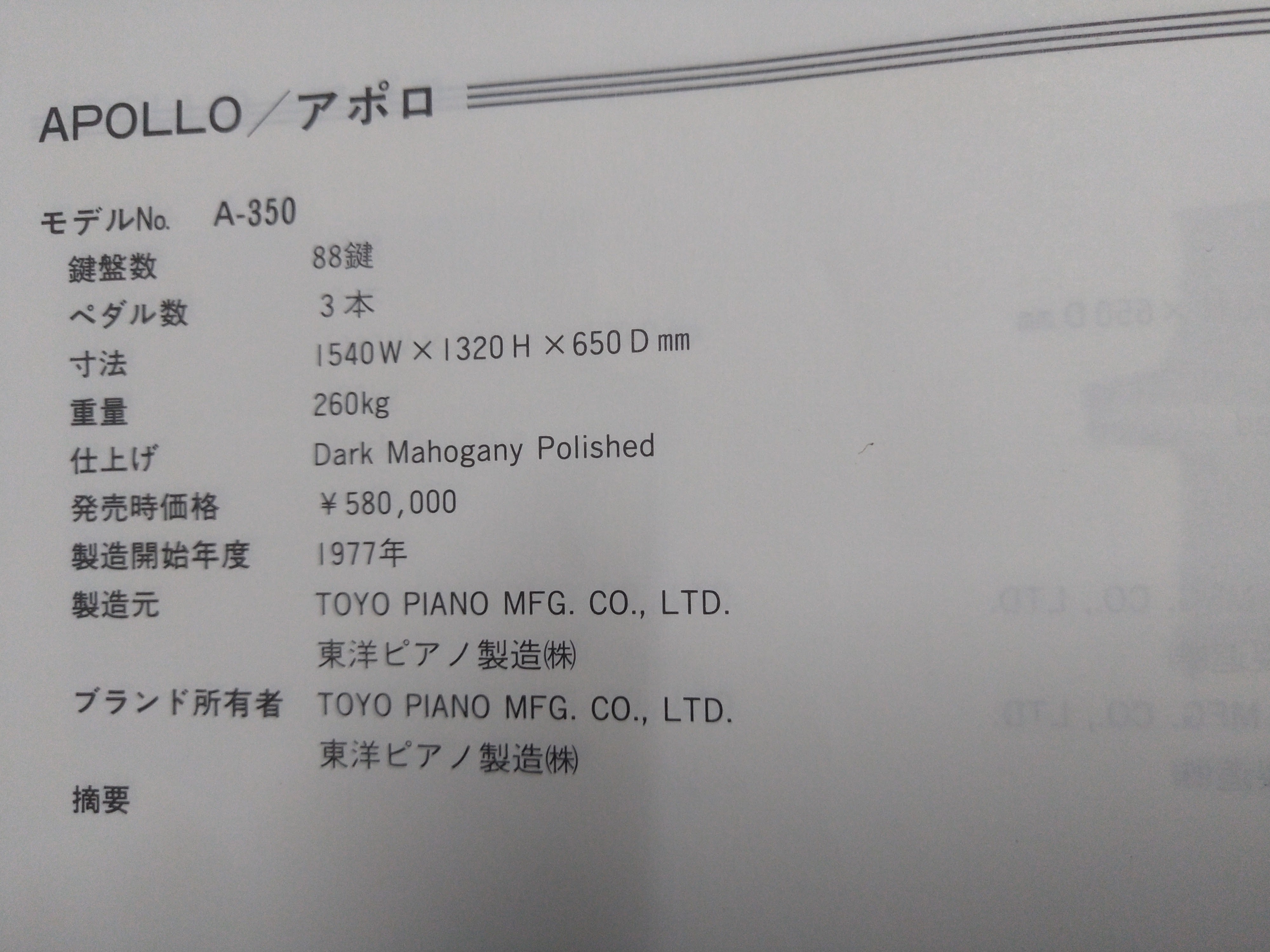 Vào năm 1977, Apollo A350 ra đời với một sứ mệnh đặc biệt. Mức giá xuất xưởng của nó tương đương với Yamaha U30A danh giá, một con số thể hiện sự tự tin và đẳng cấp. Không chỉ vậy, cây đàn này còn được trang bị bộ máy Renner lừng danh – một bộ phận chỉ xuất hiện trên những dòng đàn cao cấp nhất, đảm bảo cho mỗi phím đàn gõ lên đều là những nốt nhạc hoàn mỹ.