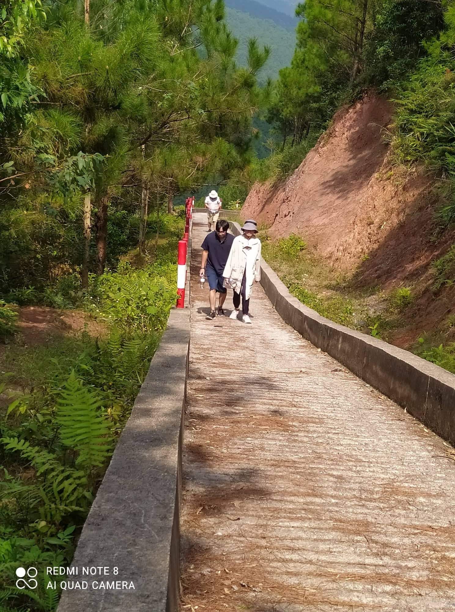 Sau bữa trưa, nghỉ độ nửa tiếng đến gần 14h thì nàng (tức vợ) sốt ruột leo lên trước. Lúc nãy, trên đường vào đây, đèo dốc quanh co, một vài chỗ núi bị sạt lở, đất lấp nửa con đường, lại thêm đầu tuần vắng vẻ nên nàng lo lắng, hối mọi người nhanh lên kẻo ra muộn thì nhỡ nó thế này, nó thế kia…