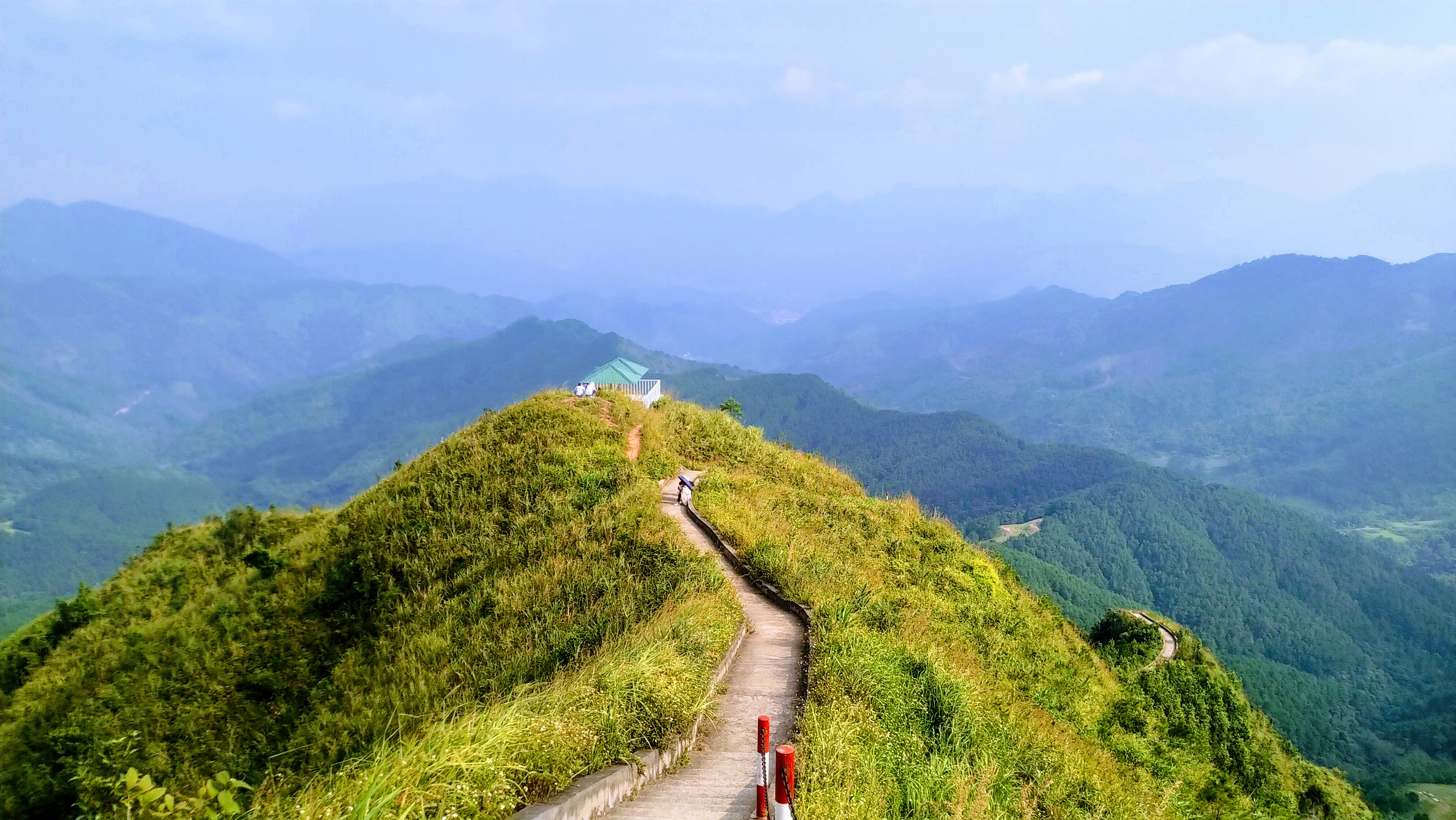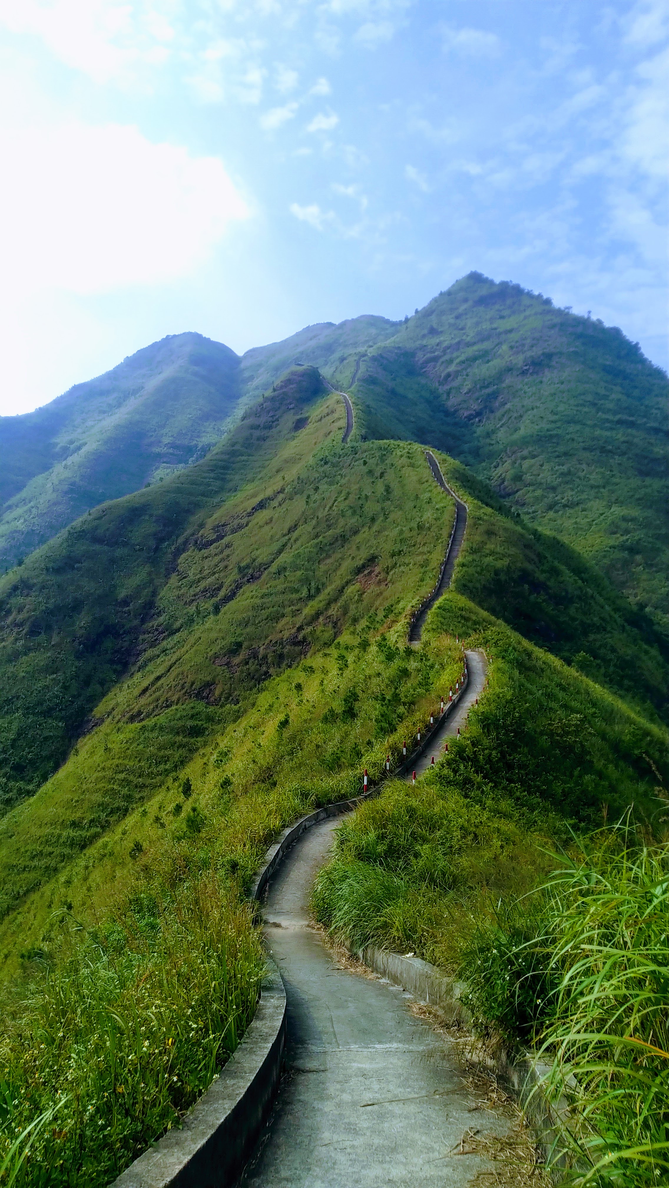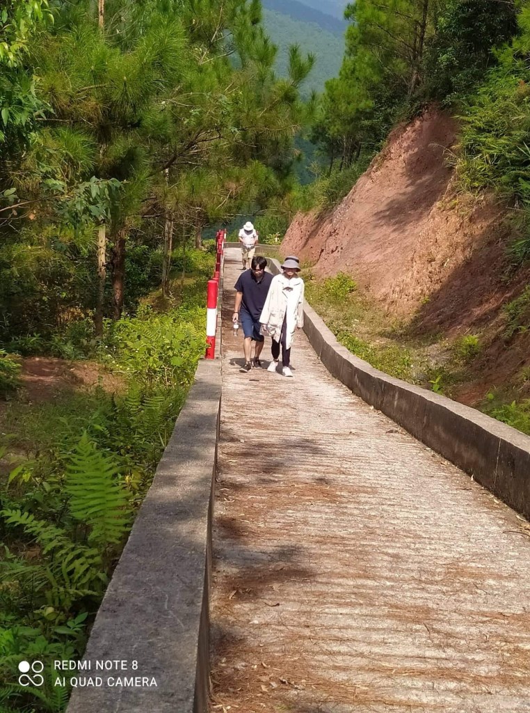Đường lên rất dốc, mặc dù người ta đã làm những bậc thang, nhưng mặt bậc khá cao. Mùa thu mát mẻ còn mệt thế, mùa hè chắc chịu không nổi. Để leo tiếp, tôi phải thực hiện một chiến thuật là leo 12 bậc thì dừng lại, hít thở 3 phát, rồi tăng lên 5 phát.