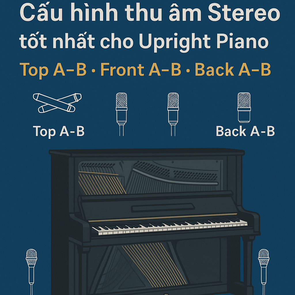 Trong bài viết này, chúng ta tạm thời bỏ qua các kỹ thuật X-Y và ORTF (sẽ được giải thích chi tiết ở những bài sau) để tập trung vào những cấu hình đơn giản, dễ áp dụng và phù hợp nhất khi thu âm Upright Acoustic Piano.